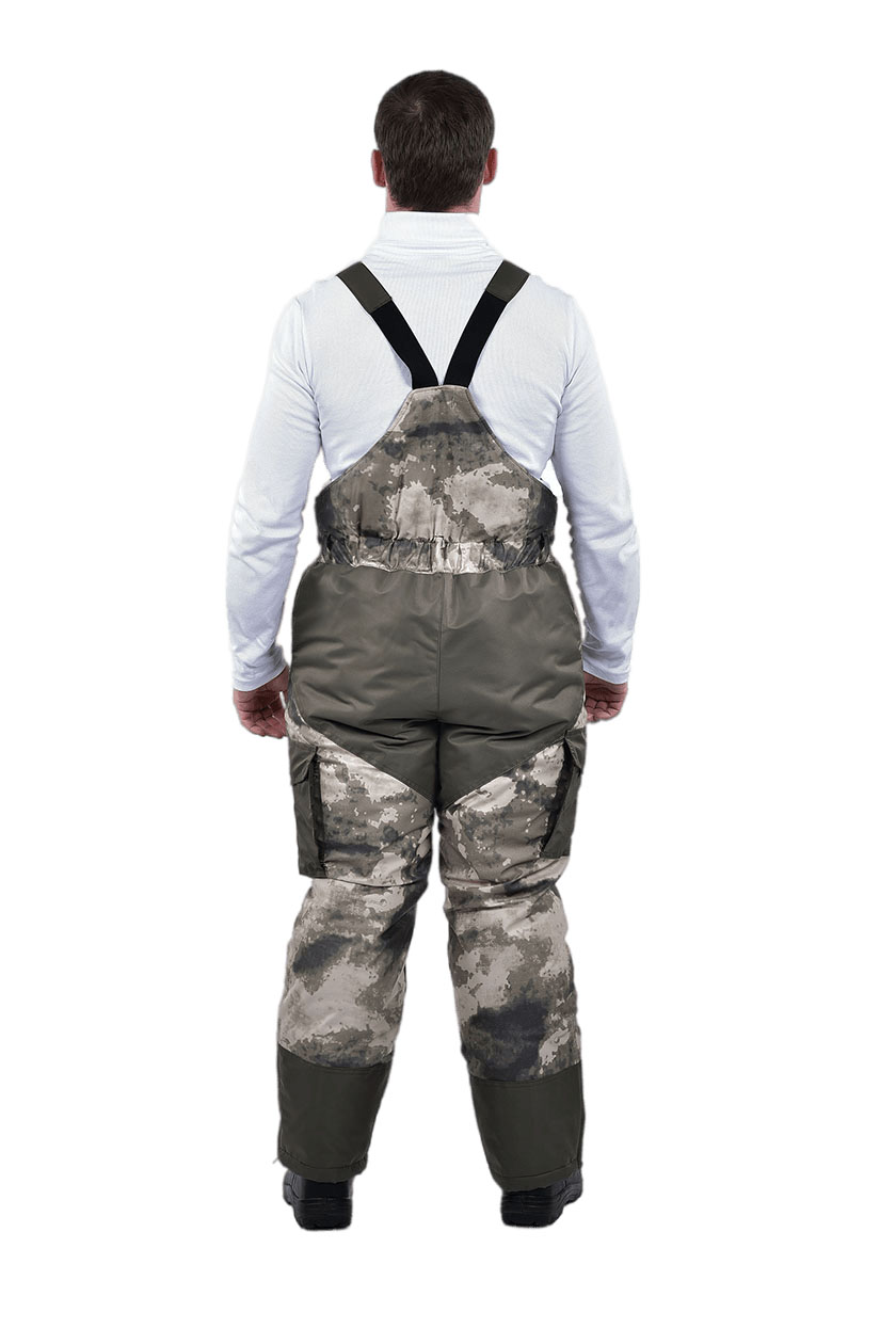 ➠ Комбинезон: высокий пояс со съемной спинкой, на бретелях. Застежка гульфика на молнию, на поясе — пуговицы. На передней части брюк карманы с отрезным бочком, по боковыми швам в области колена накладные карманы с фигурным клапаном. Наколенники переходящие в манжеты на резинке, по линии колена кулиса. По низу брюк внутренние манжеты на резинке, со штрипками.