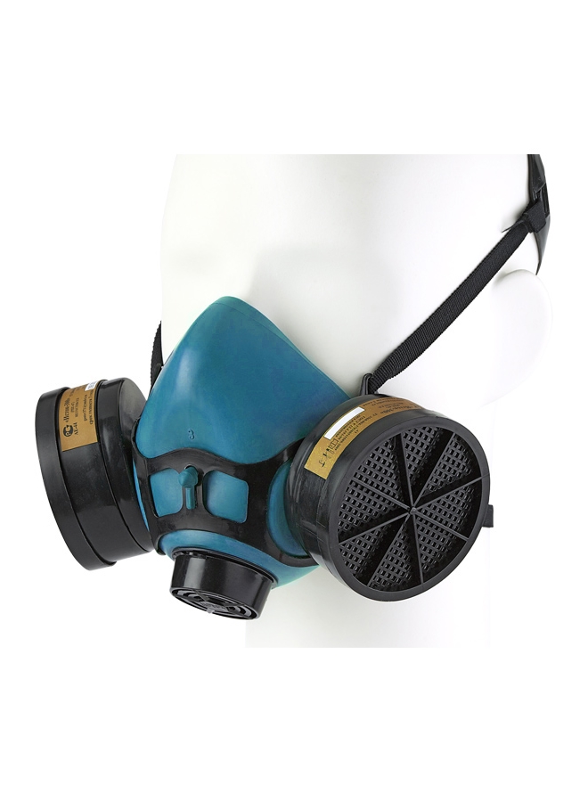 Модель: полумаска из мягкого гипоаллергенного эластомера с двумя сменными фильтрами А1. Герметичная изоляция по всей линии обтюрации. Регулируемое оголовье.