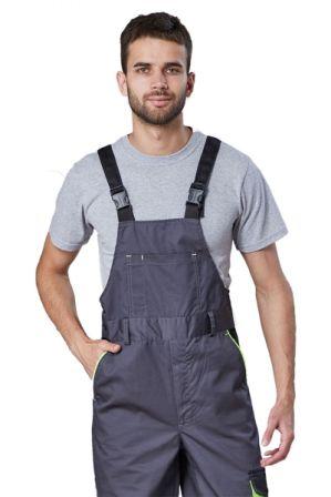 Рабочий полукомбинезон состоит из брюк и передника, которые совмещены в одном предмете одежды с плечевыми лямками для фиксации. Длину ремней можно увеличивать или уменьшать, в зависимости от антропометрических особенностей работников.