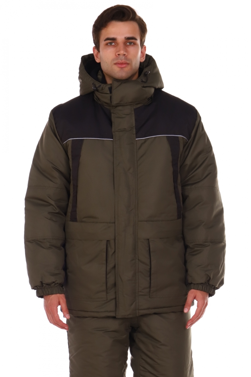 Два нагрудных кармана. Два нижних кармана в шве стачивания верхней и нижней деталей средней части полочки. Карман имеет два входа. Верхний застегивается на тесьму «молния». Рукава с трикотажными манжетами, с усилительными накладками. По линии талии и по низу куртки предусмотрена кулиса.